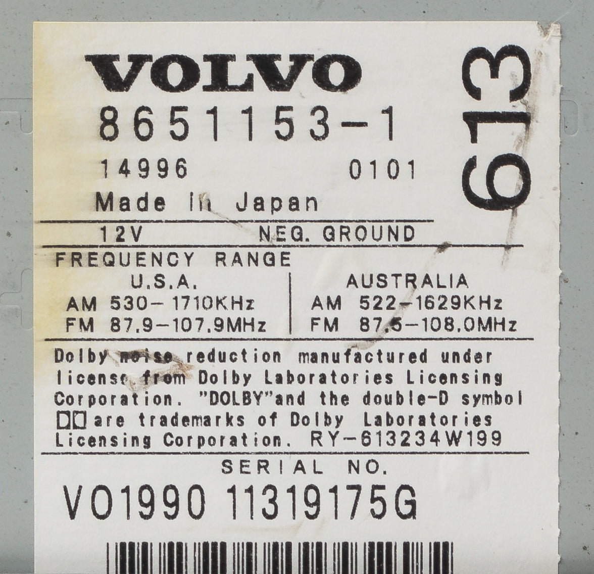 This is a Professionally Remanufactured AM FM Receiver Cassette With Single-Disc CD Player that fits 2001-2005 Volvo 60 70 Series. Please see the pictures for more cosmetic details. Code included. This item has been cleaned, serviced as needed, and thoroughly checked. The function is in 100% working order!