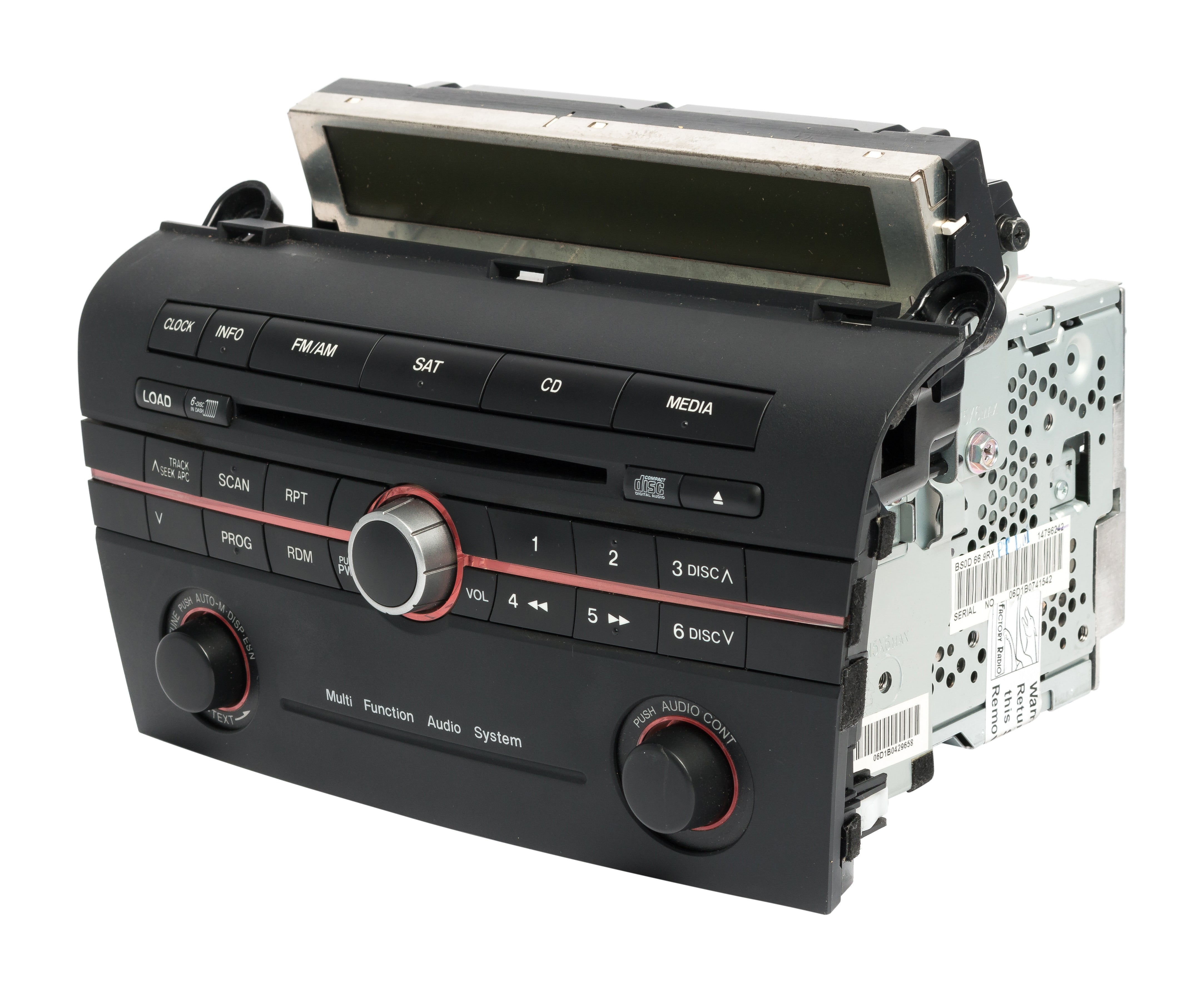 This is a Professionally Remanufactured AM FM Radio 6 Disc Changer MP3 Player that fits 2006-2007 Mazda 3. Please see pictures for more cosmetic details. This item has been cleaned, serviced as needed and thoroughly checked. Function is in 100% working order!