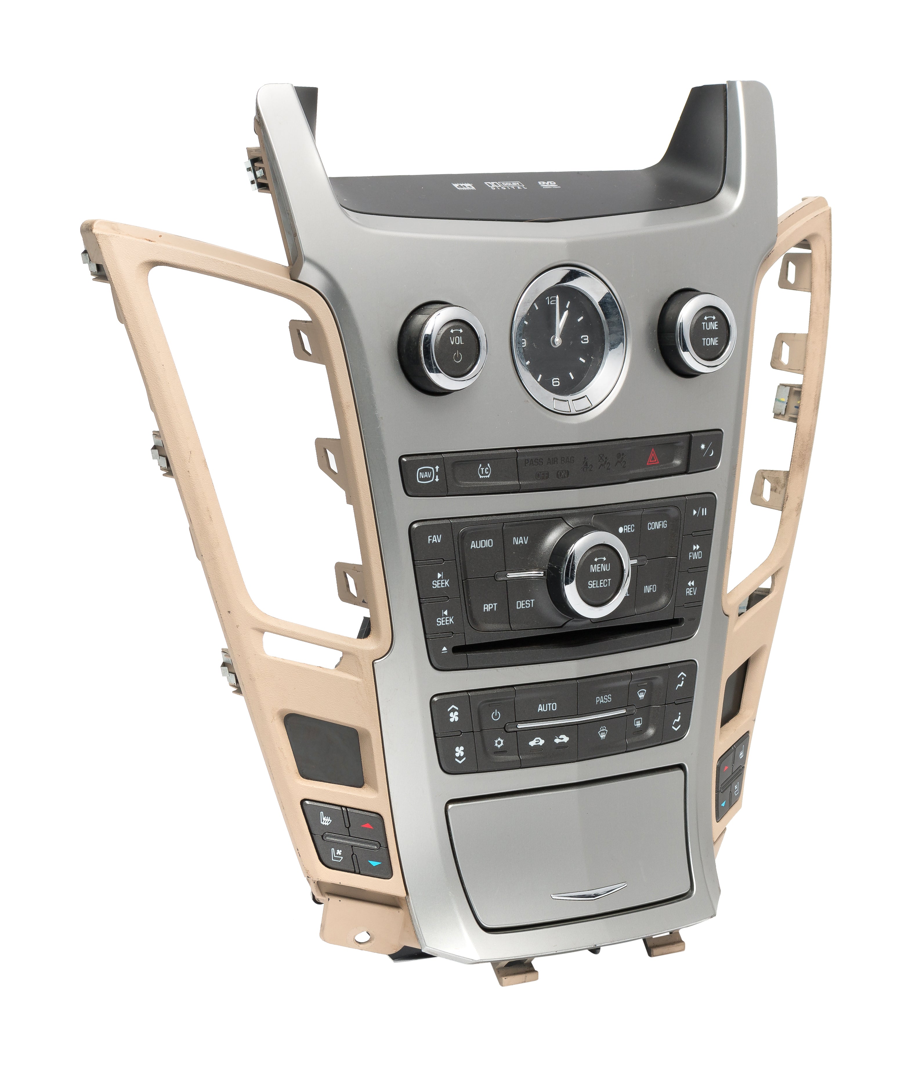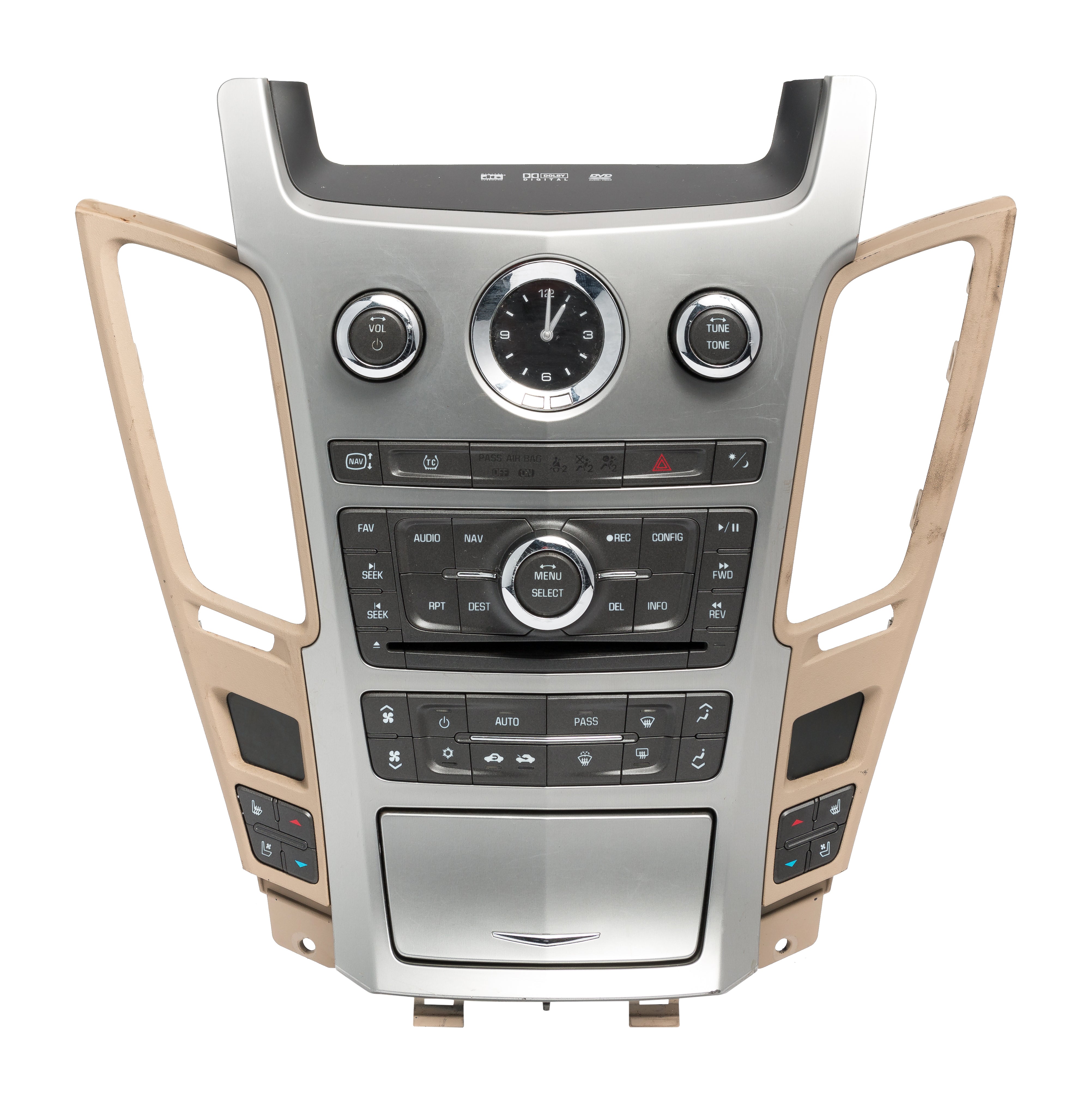 Cadillac CTS Radio and Temperature Controls with Clock in Bezel.