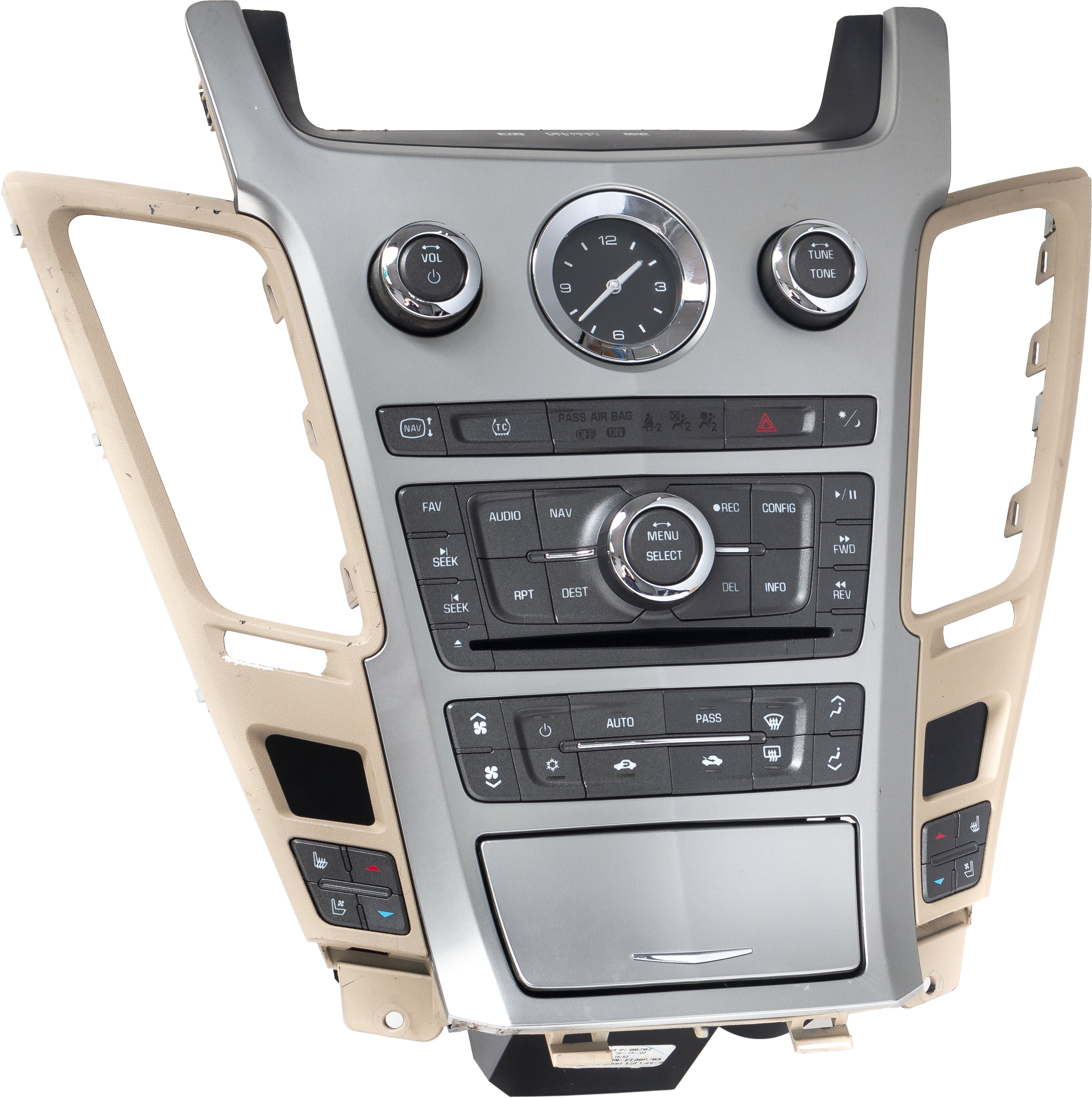 This is a professionally remanufactured Infotainment, Multimedia, and Climate Control Panel that fits a 2009-2013 Cadillac CTS. Please see pictures for more cosmetic details. This item has been cleaned, serviced as needed and thoroughly checked. Function is in 100% working order!