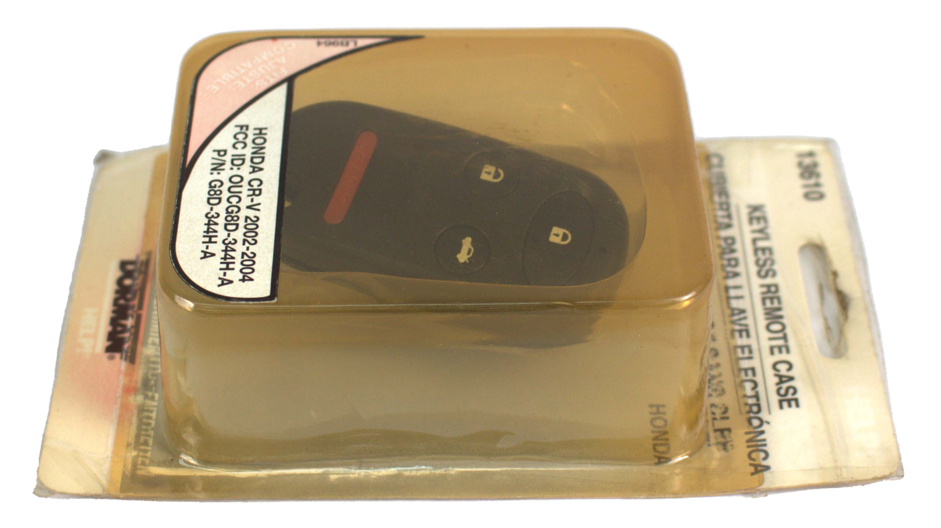 Dorman HELP! Button Keyless Remote Case * Replaces broken factory keyless remote case and faded buttons * Retain original remote for FCC# ID and OE# IMPORTANT: THIS IS A CASE/BUTTON REPLACEMENT ONLY! BATTERIES AND CIRCUIT BOARD NOT INCLUDED APPLICATIONS: 2002-04 Honda CR-V - Brand New Item - Part Number: 13610 90 Day Warranty Included! ----------------------------------------------------- 1 Factory Radio is proud to introduce our line of liquidation listings! These are new items that are priced to move. Any cosmetic blemishes are noted in the condition field so please keep that in mind when purchasing. All items are guaranteed to be in 100% working order with our standard 30 day return and 90 day warranty so you’ll still be covered by our top-notch customer service. We’ll be adding new listings to this line every day at limited quantities so be sure to bookmark and keep watch for more great deals! ----------------------------------------------------- This is a Dorman HELP! 4 Button Keyless Remote Case. This item is in NEW condition, with all items included unless otherwise listed. Please see photos for details. As you can see from our reviews, we package and ship everything very carefully. If you have any questions about any item listed, please do not hesitate to reach out. Thank You for Your Purchase!