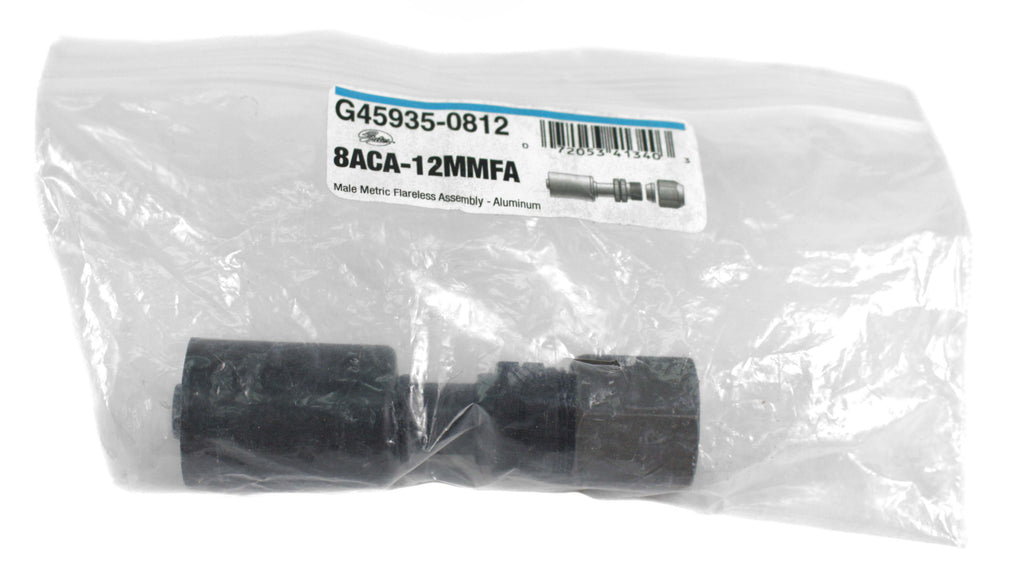 Gates PolarSeal A/C Hose Fitting Air Conditioning Hose Fitting; Male; Metric Flareless Assembly; Aluminum; PolarSeal ACA couplings are for use with Gates PolarSeal air conditioning hose Offered in many of the most popular styles of aluminum couplings with select styles available in zinc-plated steel Available in various bend angles and common stem sizes -6, -8, -10, and -12 Utilize Gates PolarSeal Portable Crimper, or one of Gates bench top crimpers, to make crimped AC assemblies using ACA couplings and PolarSeal hose. Specifications: UPC: 72053413403 Unit of Measure: Each Thread Size: 3/4-16 Inch Length (in): 3 Inch Cut Off (in): 1-3/4 Inch Hose/Tube Inside Diameter (in): 3/8 Inch Fitment: For use with Gates PolarSeal air conditioning hose Part Interchange: Four Seasons 17868 Dayco 118132 Global Parts Distributors 1027878 Truck Air 08-3118B Goodyear 50240-0812 Ready-Aire 3331B Ready-Aire 3331B-25 Visteon 220253 Visteon 97868 NAPA G45935-0812 NAPA Temp 401064 - Brand New Item - Part Number: G45935-0812 90 Day Warranty Included! ----------------------------------------------------- 1 Factory Radio is proud to introduce our line of liquidation listings! These are new items that are priced to move. Any cosmetic blemishes are noted in the condition field so please keep that in mind when purchasing. All items are guaranteed to be in 100% working order with our standard 30 day return and 90 day warranty so you’ll still be covered by our top-notch customer service. We’ll be adding new listings to this line every day at limited quantities so be sure to bookmark and keep watch for more great deals! ----------------------------------------------------- This is a Gates PolarSeal A/C Hose Fitting for use with Gates PolarSeal air conditioning hose. This item is in NEW condition, with all items included unless otherwise listed. Please see the photos for details. As you can see from our reviews, we package and ship everything very carefully. If you have any questions about any item listed, please do not hesitate to reach out. Thank You for Your Purchase!