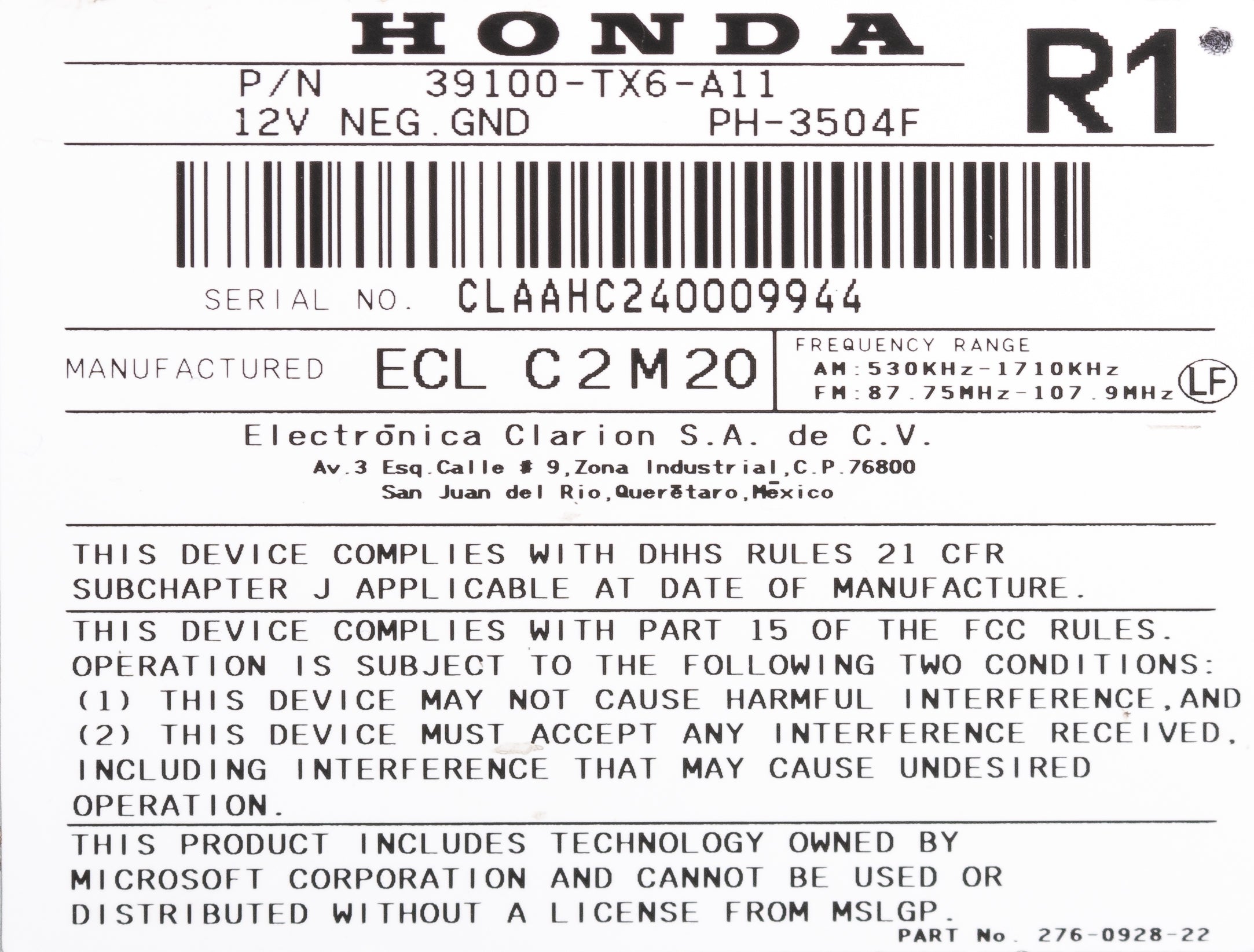 This unit is being sold as a REPLACEMENT ONLY! The part number is 39100TX6A11. If you do not have this exact part number, or compatible part number currently in your vehicle, it will likely NOT WORK. If you are unsure of your part number, contact us with your VIN and they should be able to provide you with the correct part number. They may look the same and have the same plugs but data streams may be different, not allowing them to code. For example, external amps are used in some cars and will not allow interchange, etc.