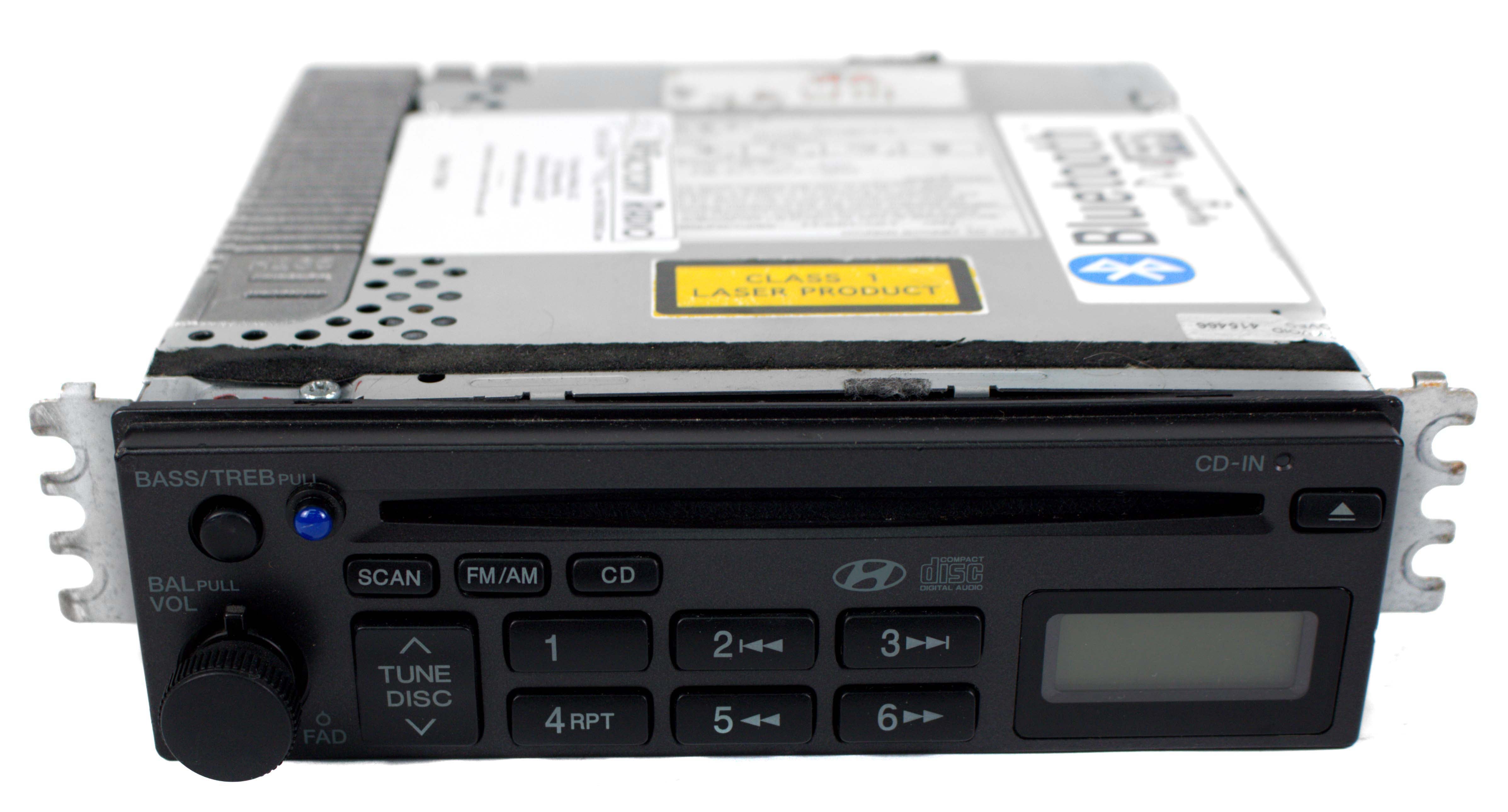 This is a professionally remanufactured AM FM Radio with Single Disc CD Player and Bluetooth Connection Upgrade! that fits a 2001-2006 Hyundai Elantra. Please see pictures for more cosmetic details. This item has been cleaned, serviced as needed and thoroughly checked. Function is in 100% working order!