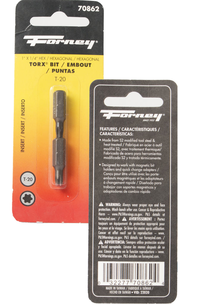 Forney Replacement Insert Bit Torx 1/4in Hex Drive Size T20 x 1in Model ID 70862