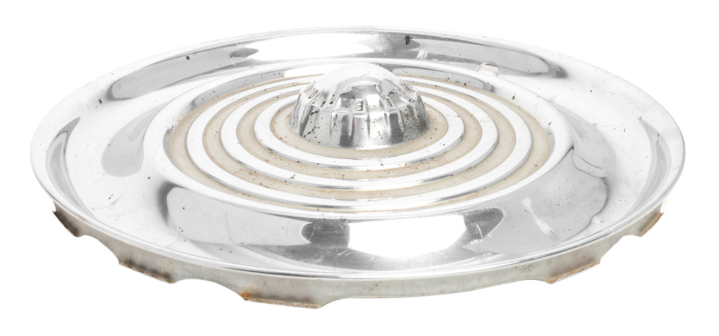 This wheel cover hubcap fits 1956 Oldsmobile Starfire. This wheel cover hubcap is in good condition, with minor wear and blemishes, as pictured.