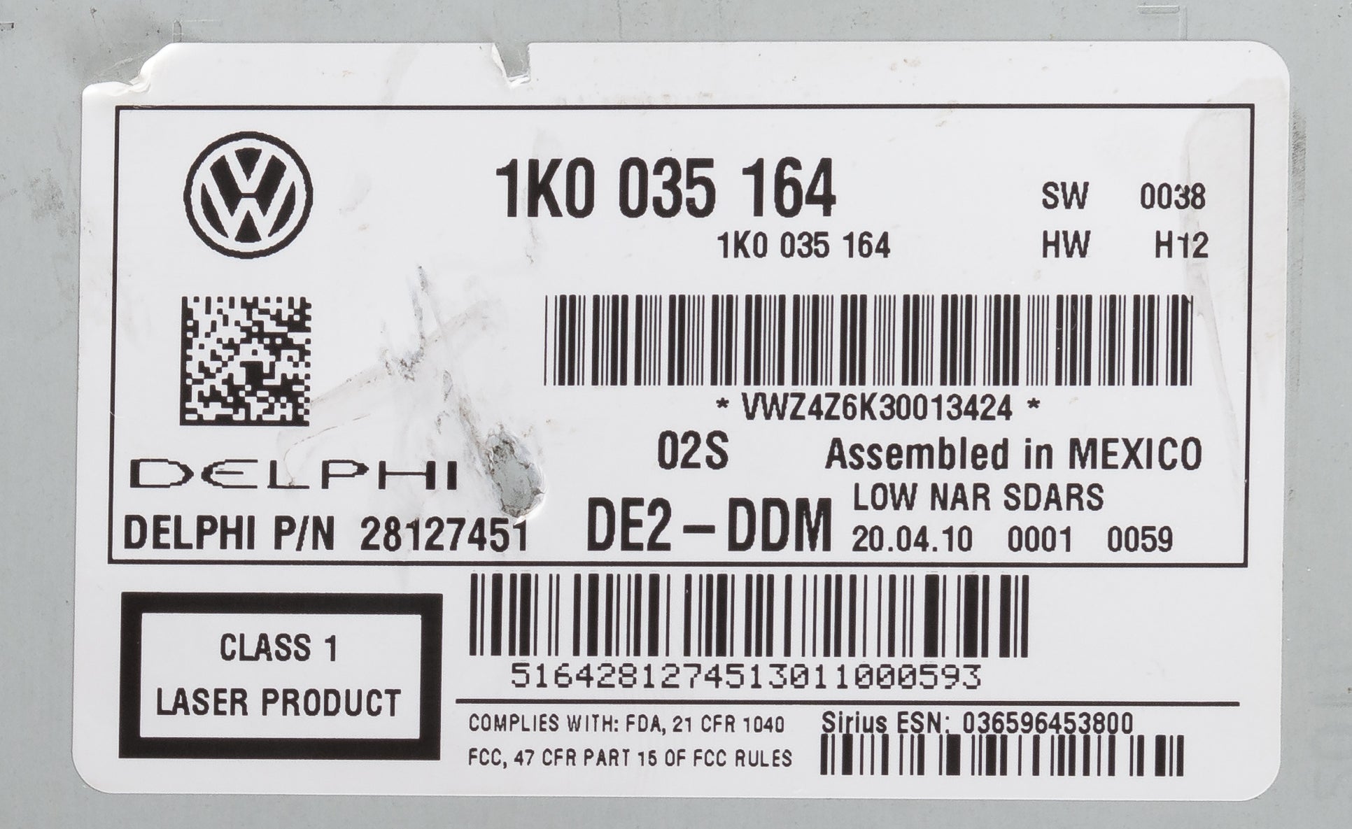 This unit is being sold as a REPLACEMENT ONLY! The part number is 1K0035164. If you do not have this exact part number, or compatible part number currently in your vehicle, it will likely NOT WORK. If you are unsure of your part number, contact us with your VIN and they should be able to provide you with the correct part number. They may look the same and have the same plugs but data streams may be different, not allowing them to code. For example, external amps are used in some cars and will not allow interchange, etc.