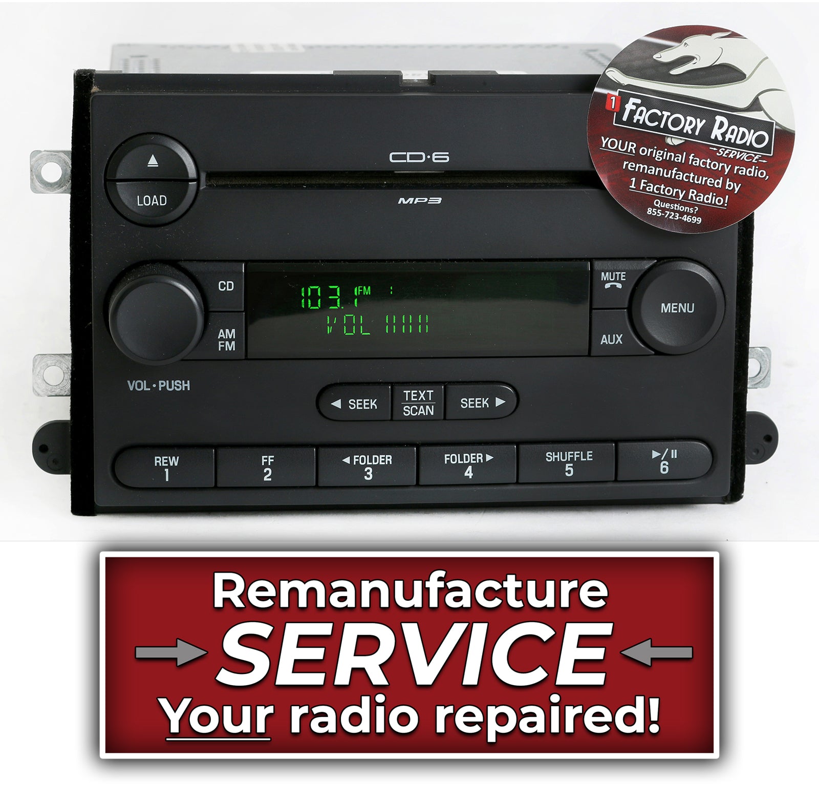 This listing is only for the display repair service for your original factory radio. The display repair service does not include any other repairs. If you would like this radio upgraded with an auxiliary input or need other repairs done to this radio, please contact us. This is for the Ford single disc and the 6 disc CD players. The radio pictured is not included in the listing and is shown as an example only.