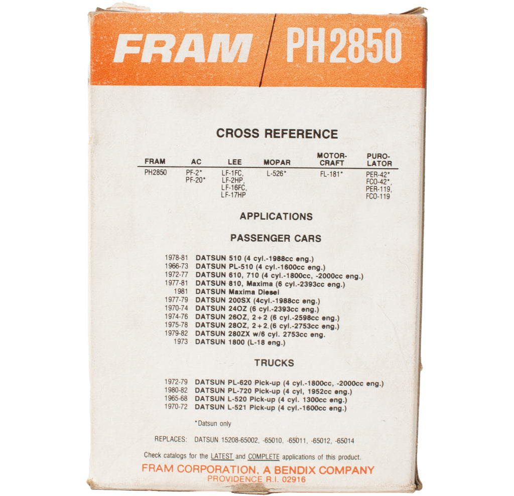 FRAM Oil Filter PH2850 Replace Nissan 1016238S01 Ford 3707442 Hyundai 1520865011