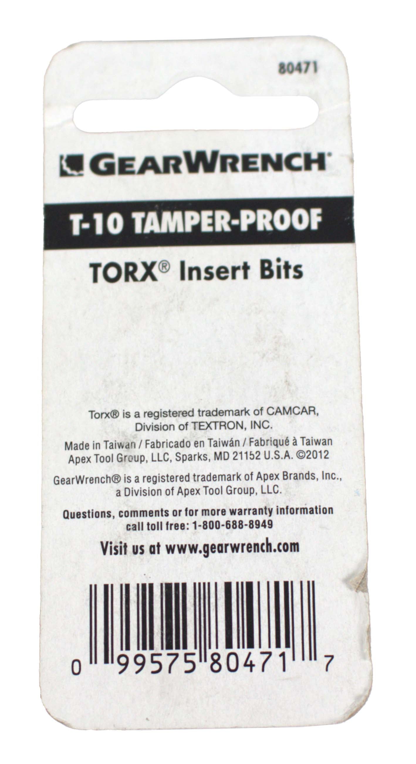 This is a GearWrench T10 High Performance Tamper Proof Torx Bit Insert. This item is in NEW condition, with all items included unless otherwise listed. Please see photos for details.