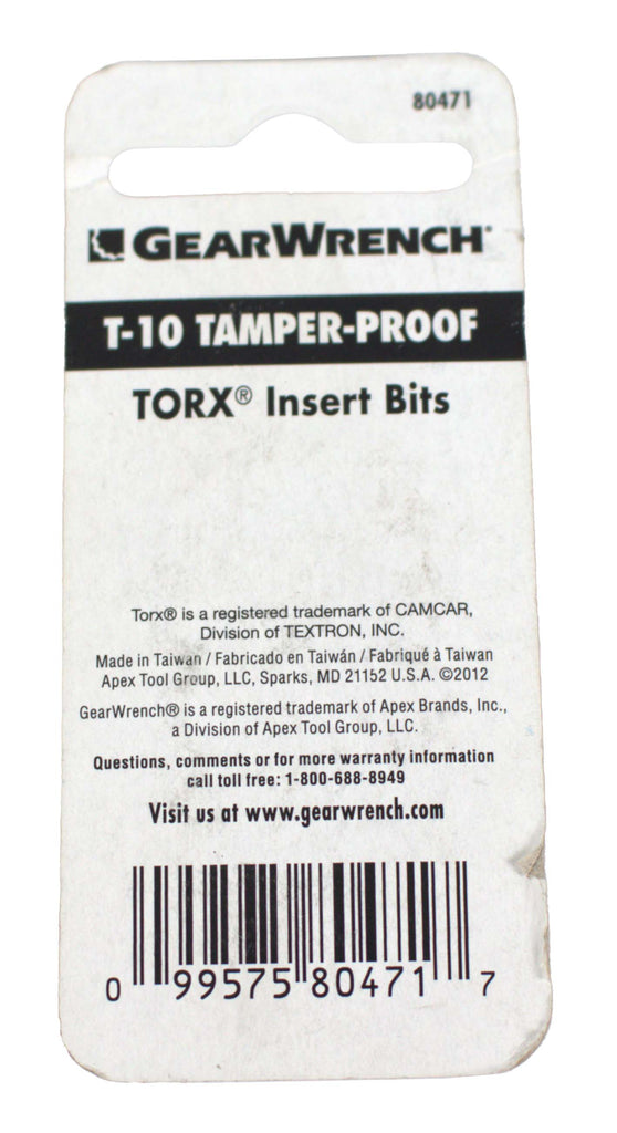 GearWrench 1 T10 High Performance Tamper Proof Torx Bit Insert Part Number 80471