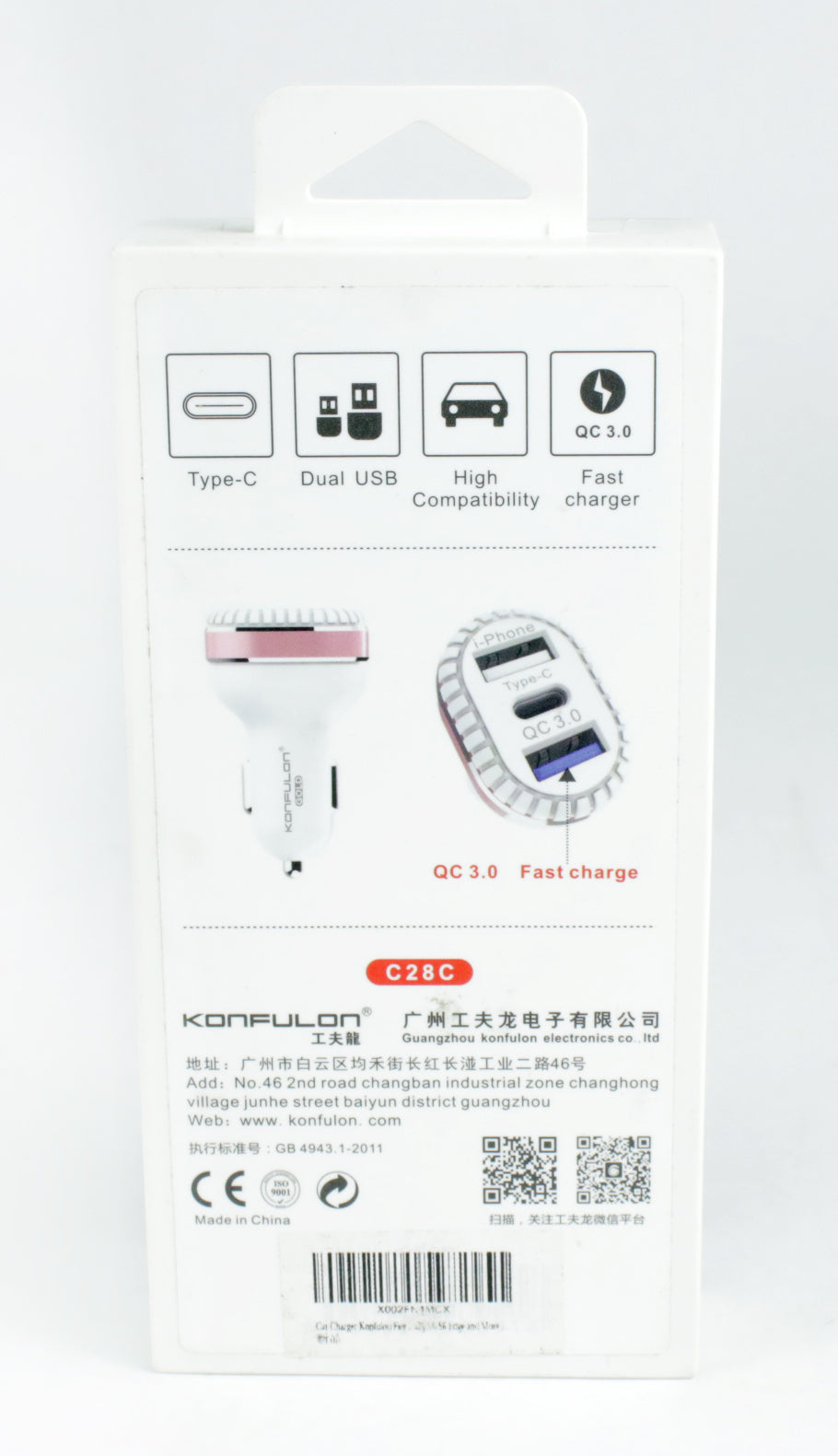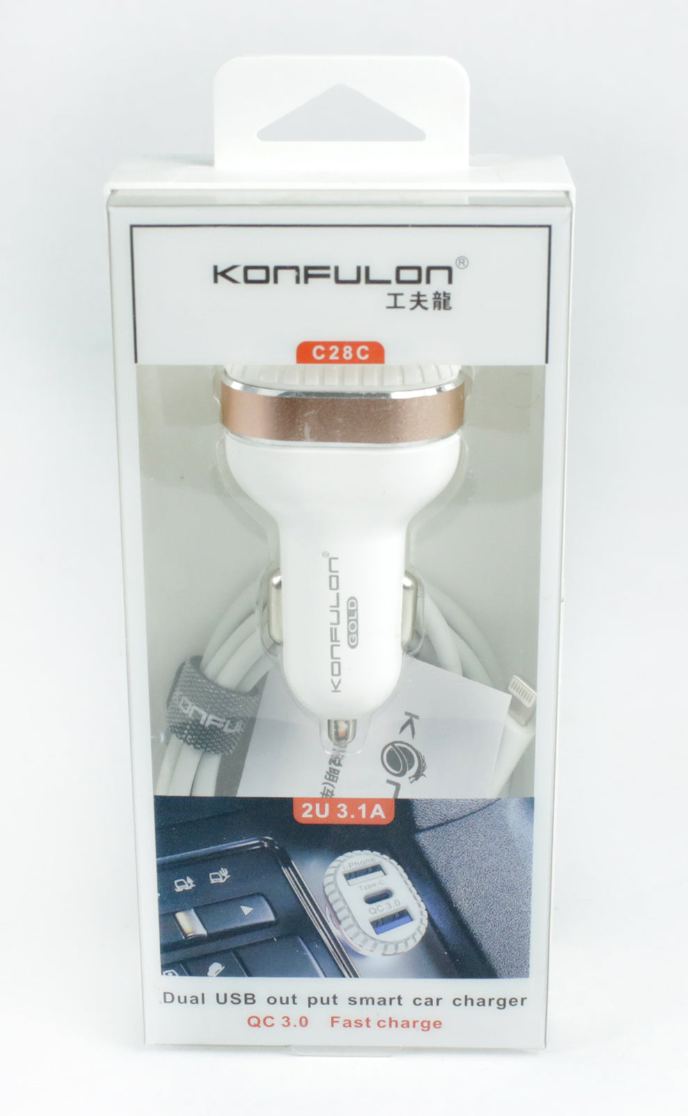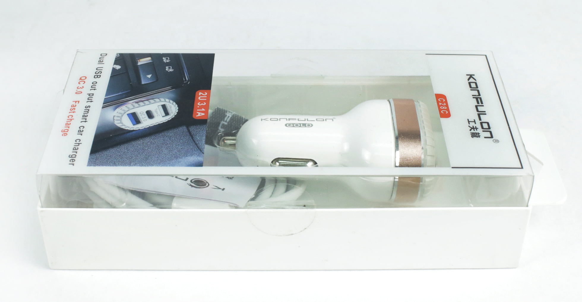 Konfulon QC 3 Car Charger Dual USB Port Charger Adapter Fast Charging Model C28C
