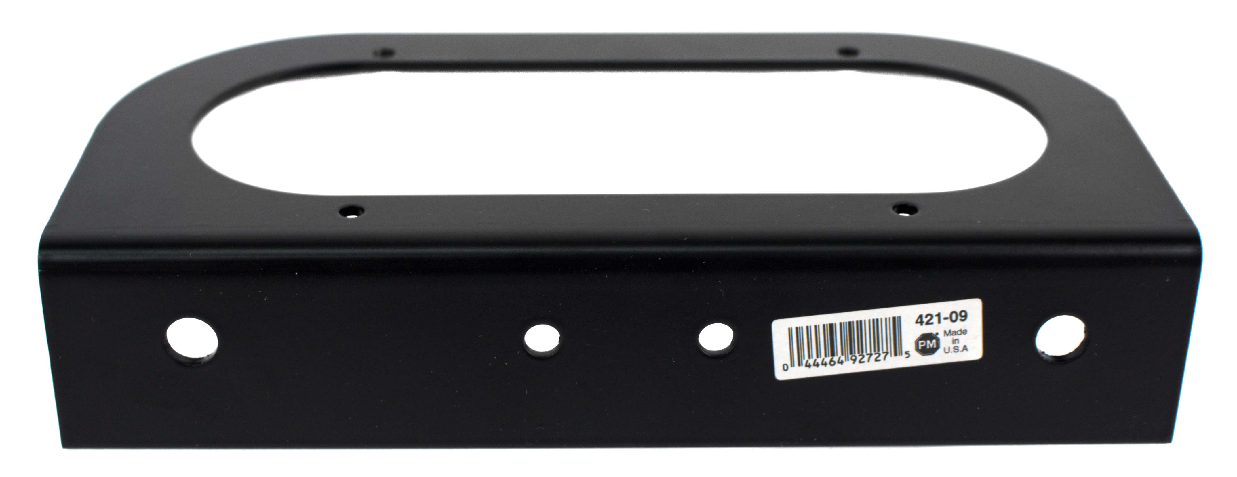 Steel mounting bracket allows you to surface mount a 6-1/2" long oval trailer light. Requires grommet for complete installation. Fits Peterson 350, 352, 416, 420, and 421 series lights and similar competitor lights.